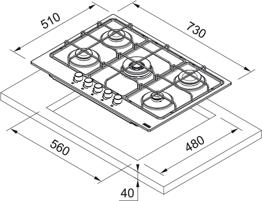 Размер выреза 560 х 480 мм