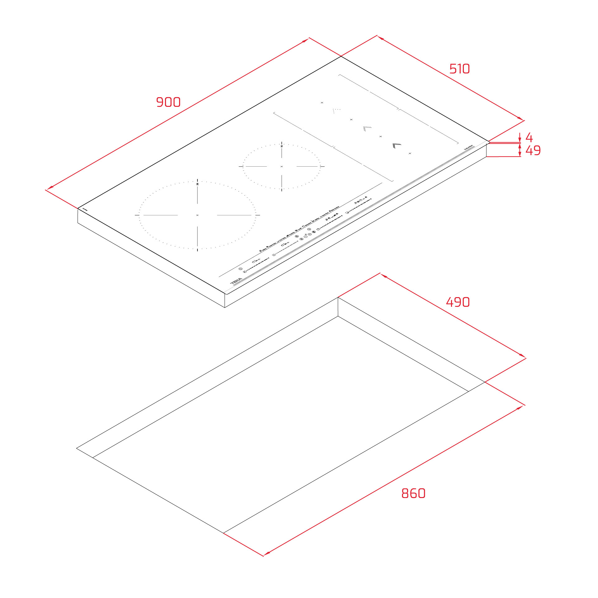 • Индикаторы остаточного тепла: включаются при температуре зоны нагрева выше 60°С