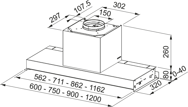 Увеличенная зона аспирации, наклонные жироулавливающие фильтры с направляющими, поддон для конденсата, увеличенный козырек из закаленного стекла, сенсор на стекле, таймер, LED,