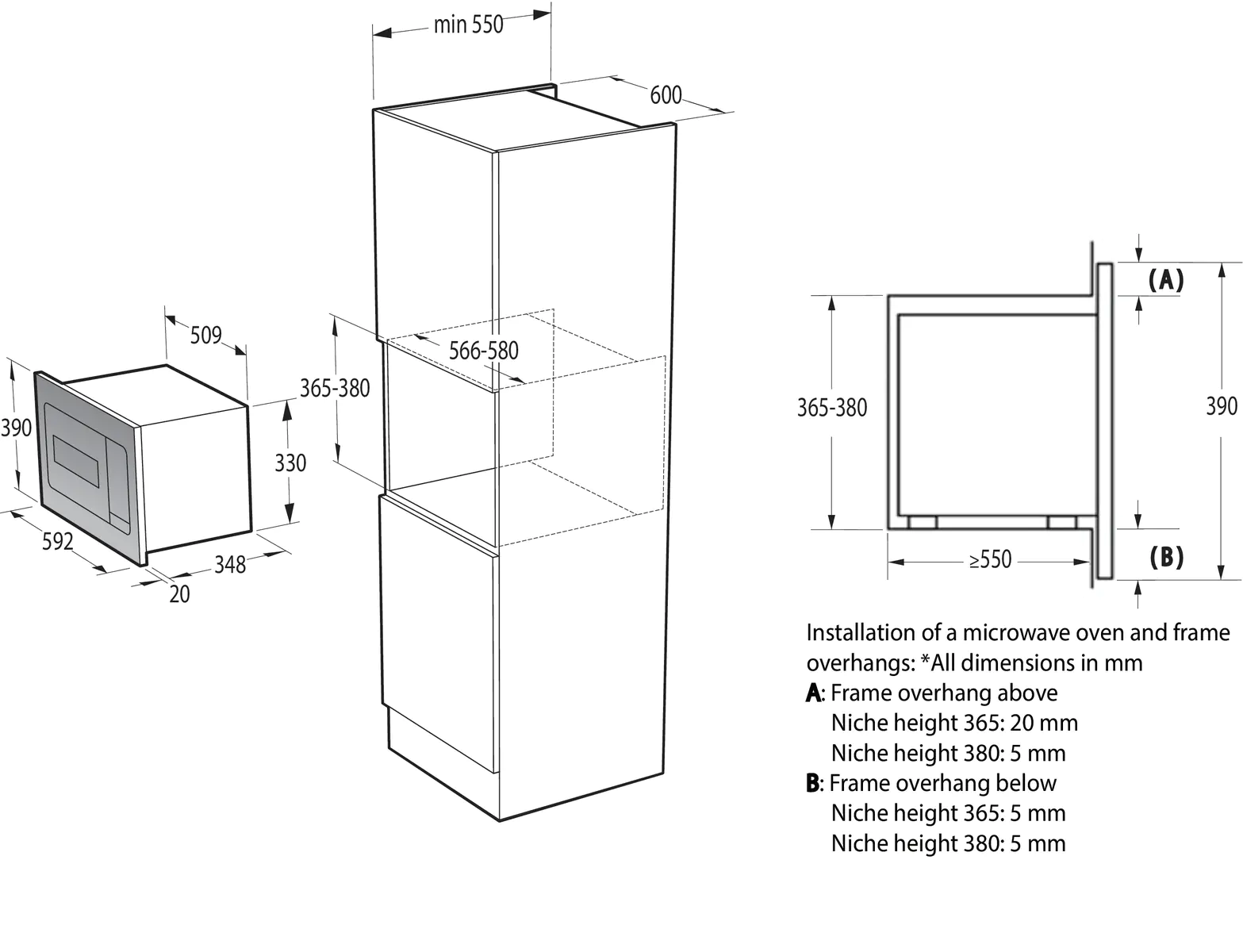 Минимальная высота ниши, мм