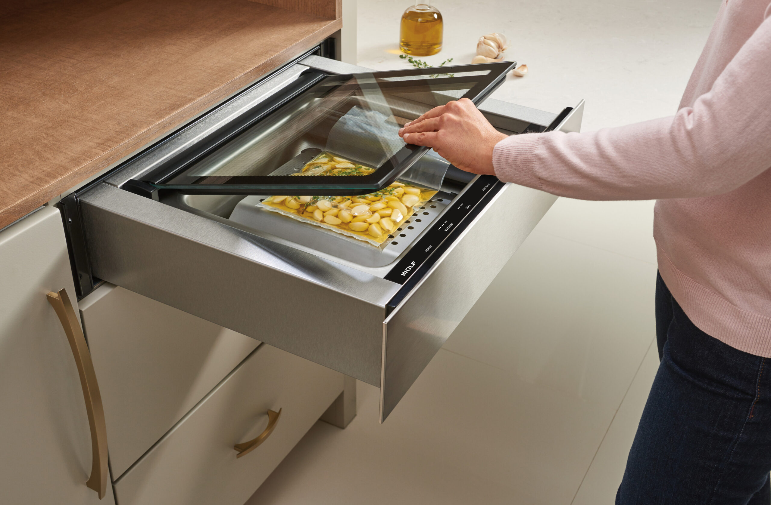 Вакууматор Wolf ICBVS24 выполнен в изысканном современном стиле и идеально сочетается с другой техникой бренда. Компактный корпус и премиальные материалы обеспечивают долговечность и гармоничное дополнение к интерьеру кухни.