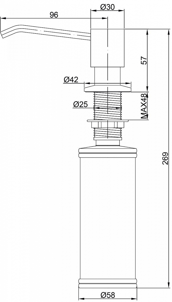 Клапан дозатора изготовлен из высококачественной латуни, а цветовое покрытие устойчиво к механическим повреждениям.