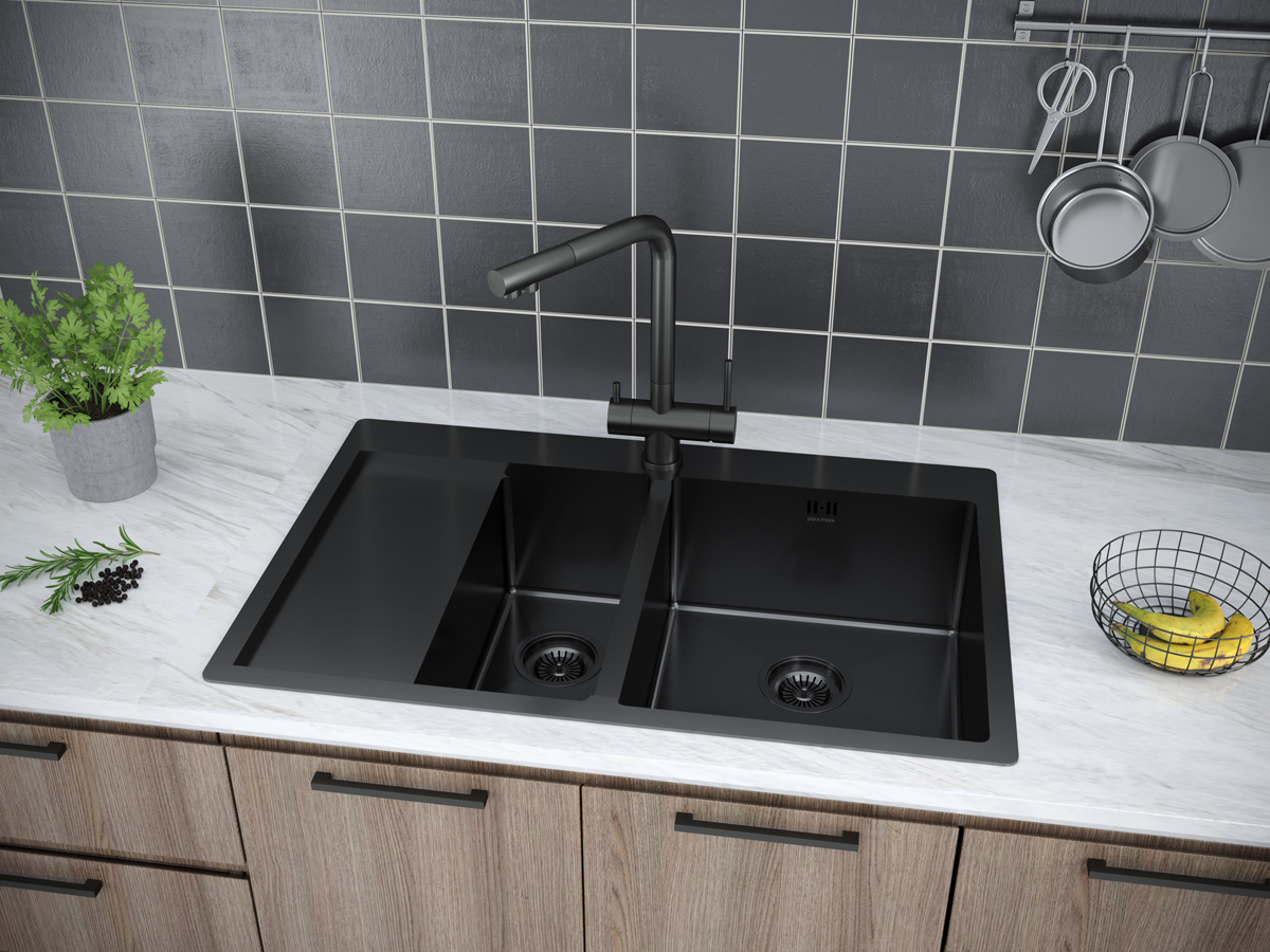 PVD покрытие моек Paulmark в цветах воронёная сталь / брашированное золото (GM / BG) является экологически чистым. Особый метод напыления покрытия путём прямой конденсации пара наносимого материала позволяет поверхности мойки быть особенно устойчивой к появлению царапин и истиранию. Такое покрытие является защитным слоем, оно чрезвычайно плотно и равномерно прилегает к основе, не содержит микротрещин.