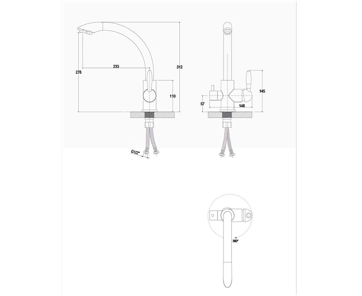 Смеситель ESSEN Es213001 для кухни рычажный, с возможностью подключения фильтра питьевой воды.