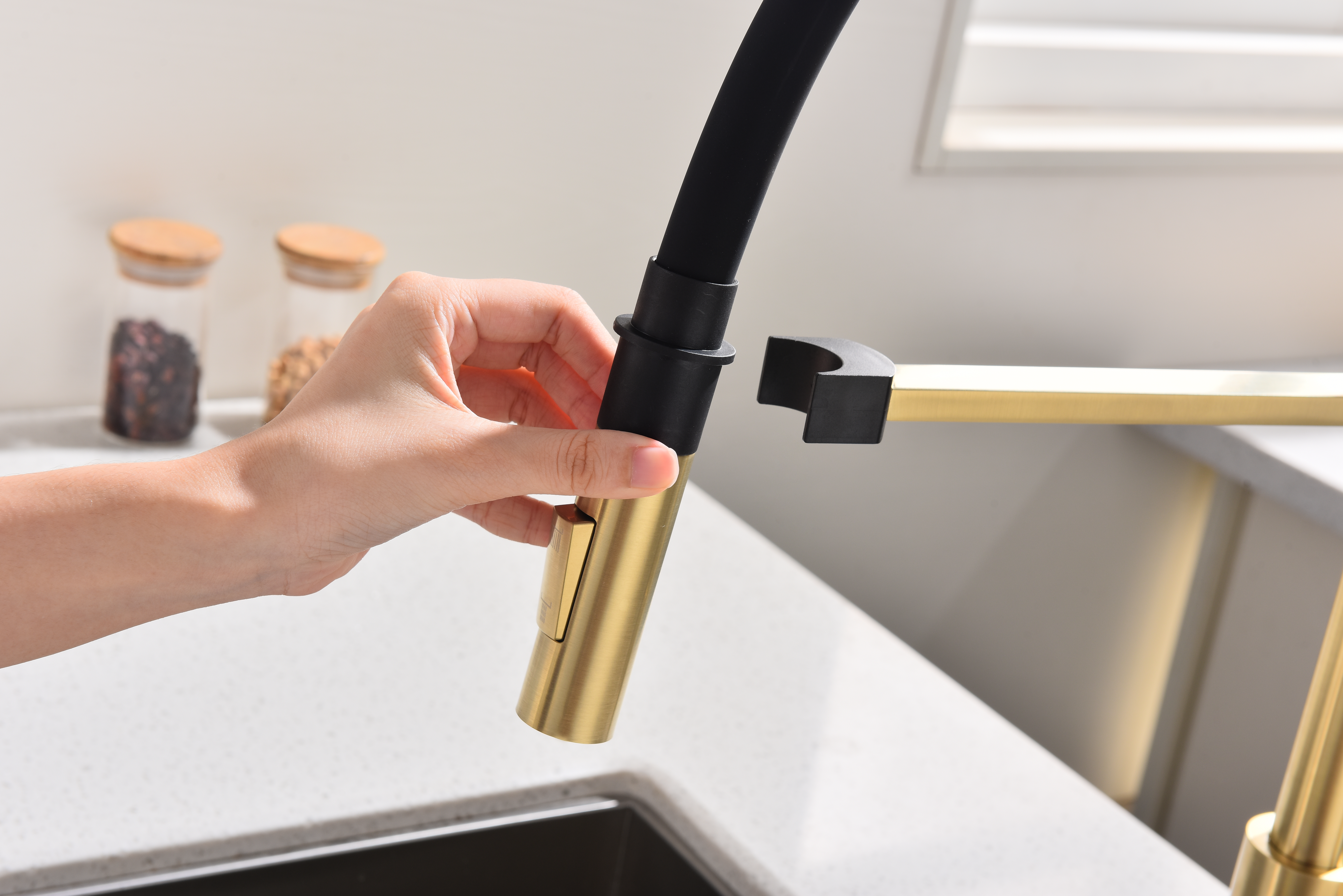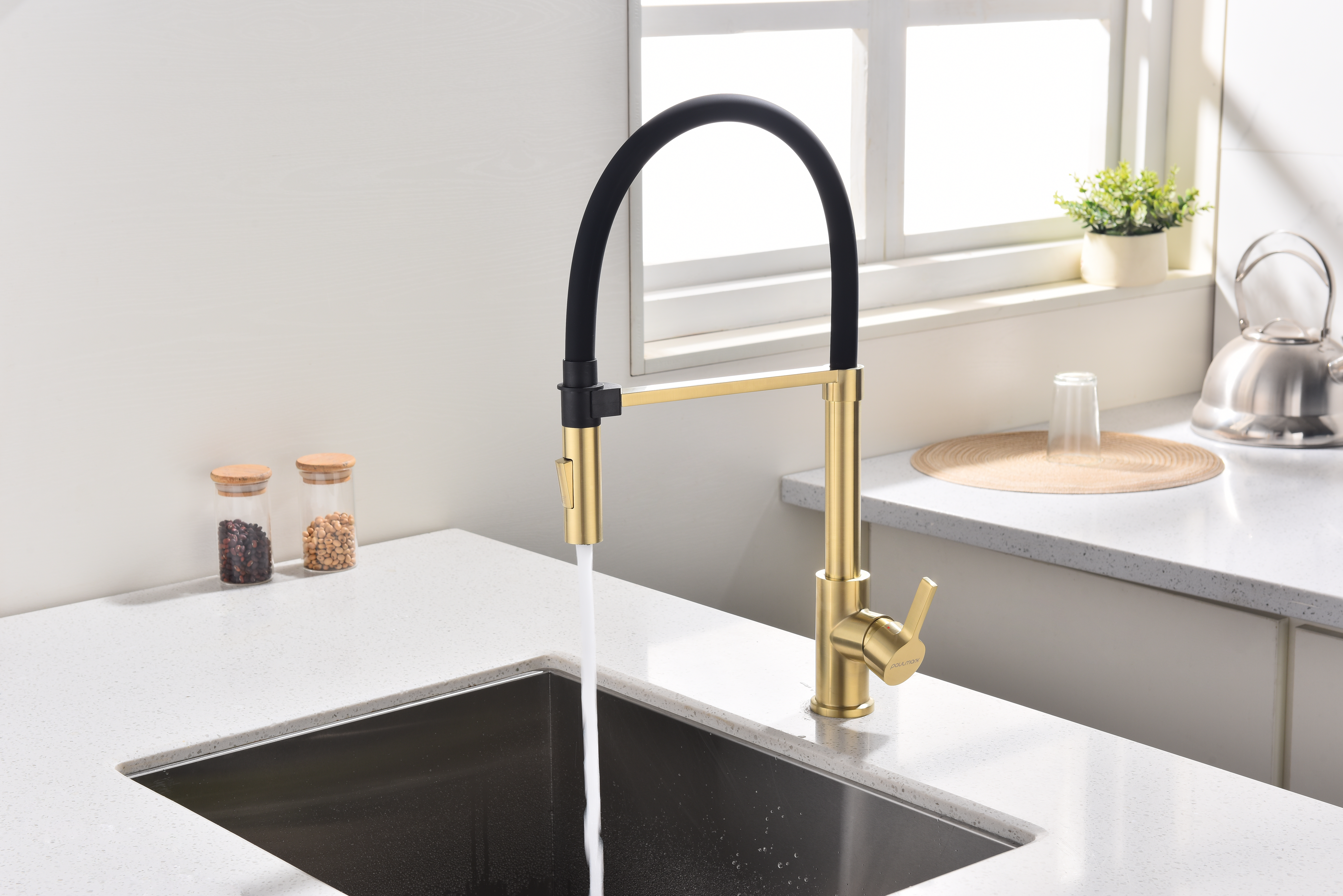 Крепление гибкого излива с помощью магнитного держателя обеспечивает надёжную фиксацию.